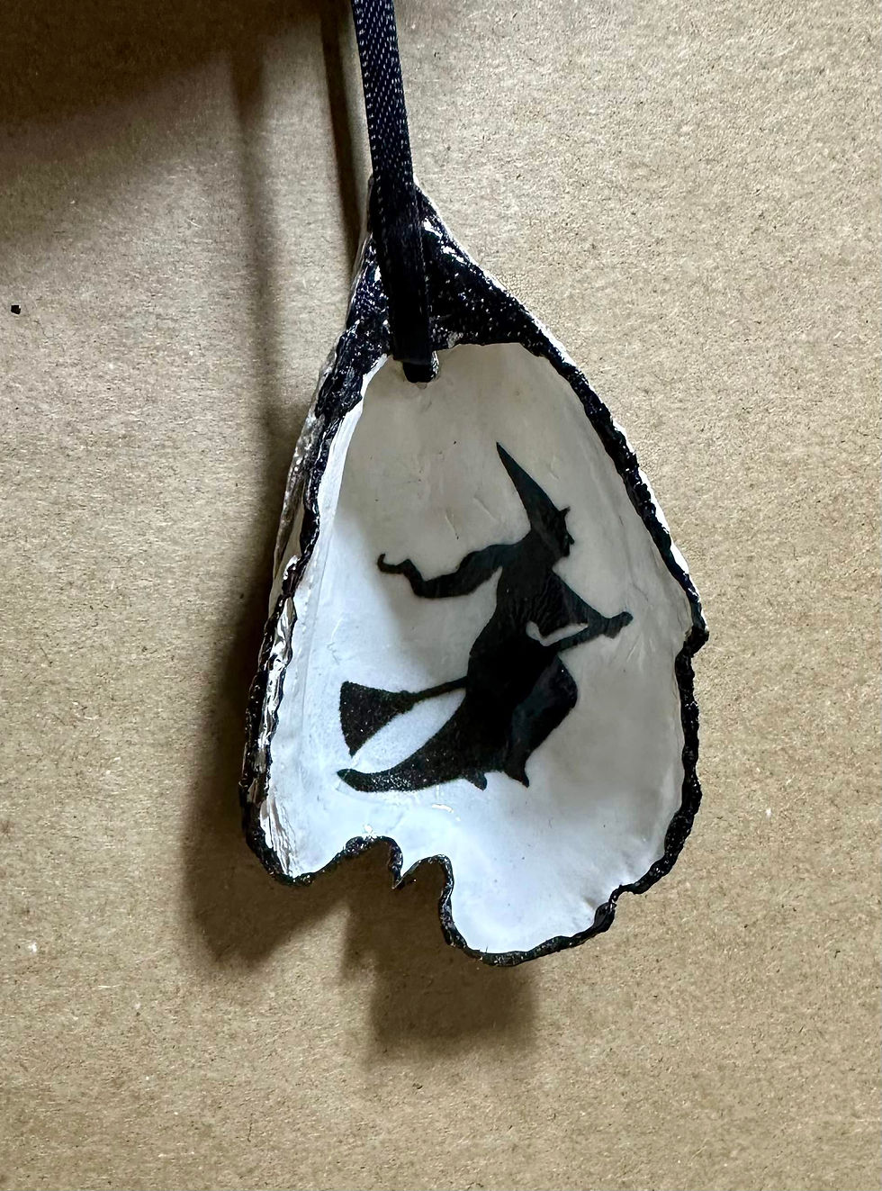 Salem Witch Oyster Shell Ornament or Bottle Charm